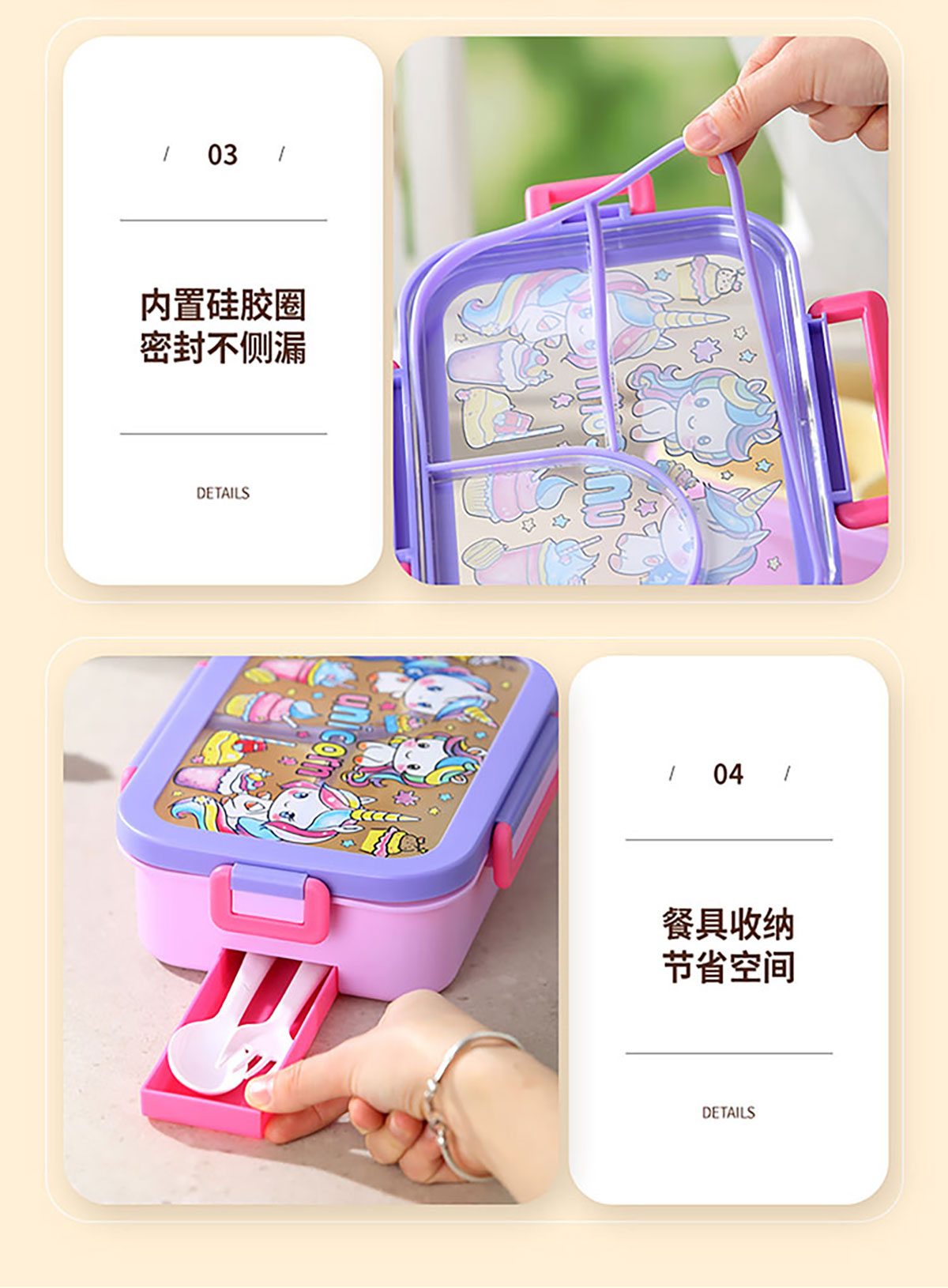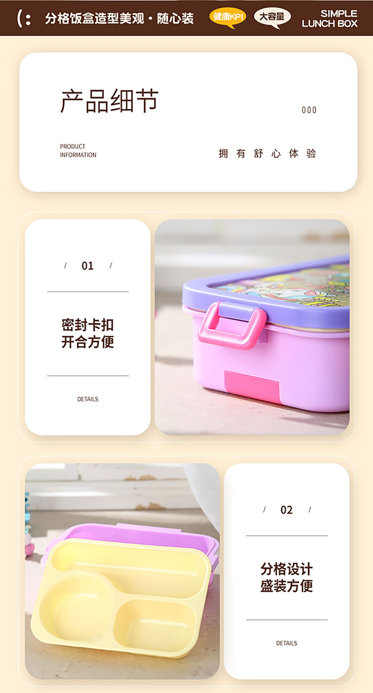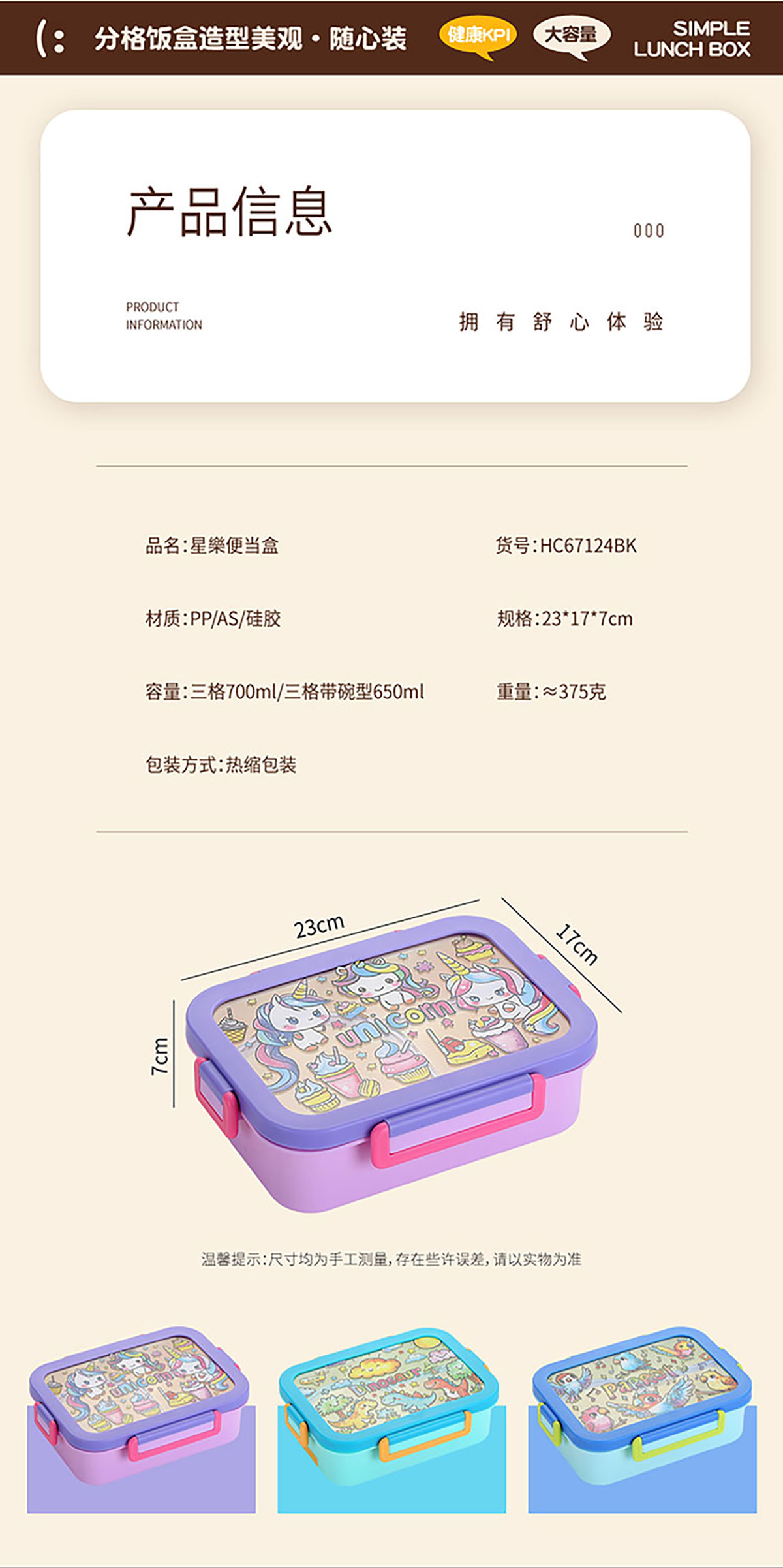 星樂卡通便當(dāng)盒 下單可選三格700ml/三格帶碗650ml