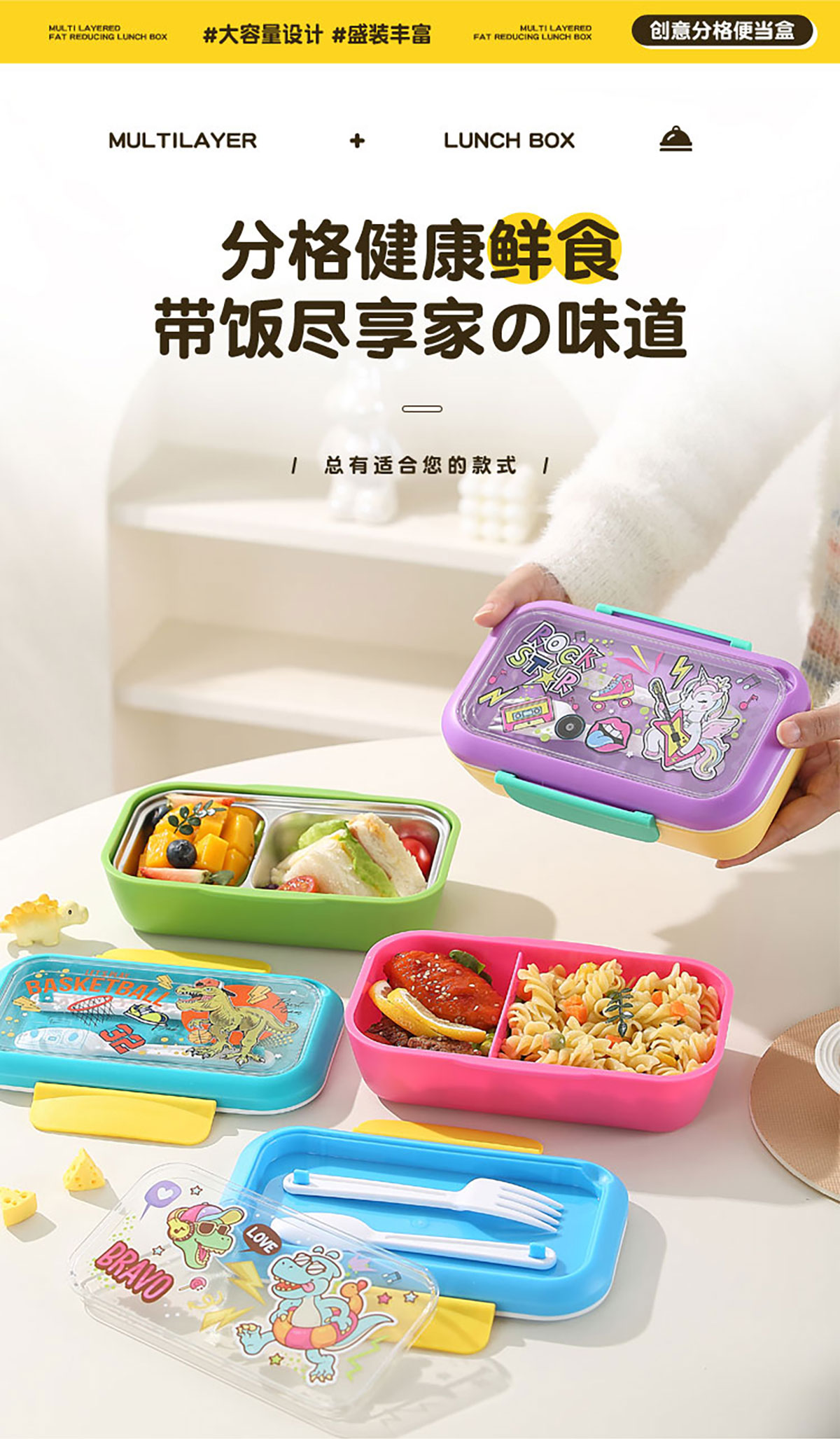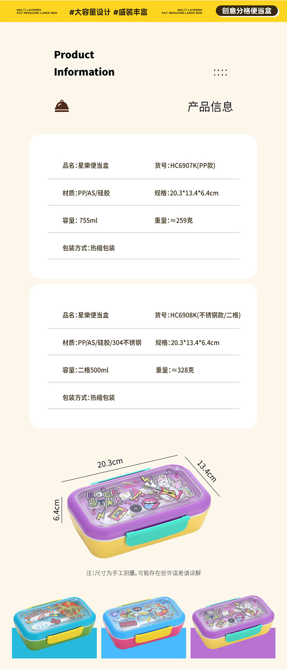 星樂(lè)卡通便當(dāng)盒PP款755ml/不銹鋼款500ml