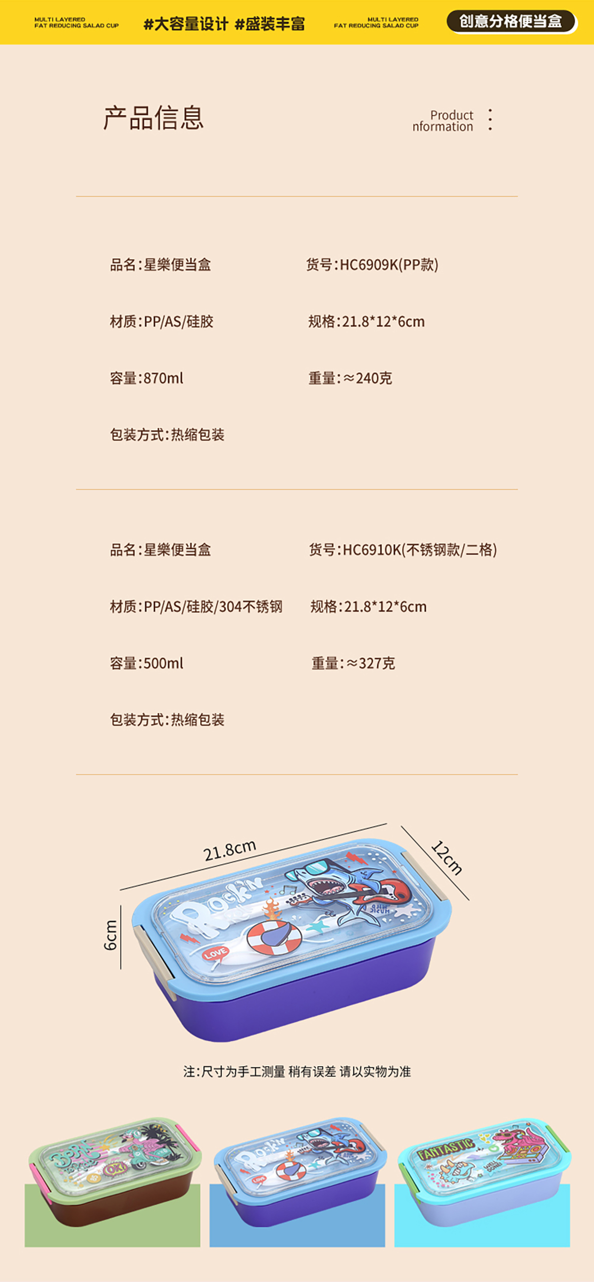 星樂卡通便當(dāng)盒PP款750ml/不銹鋼款500ml