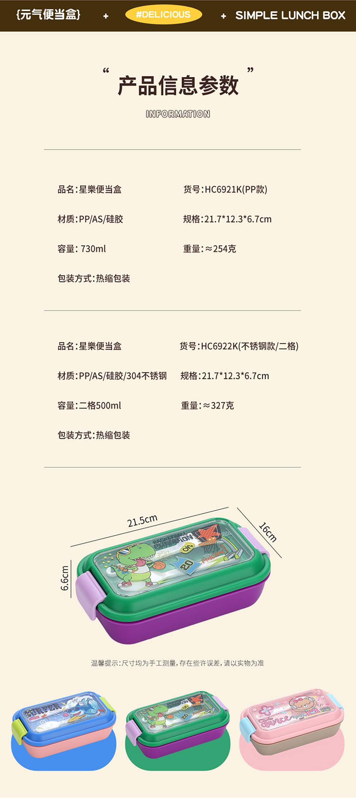 星樂卡通便當(dāng)盒PP款730ml/不銹鋼款500ml