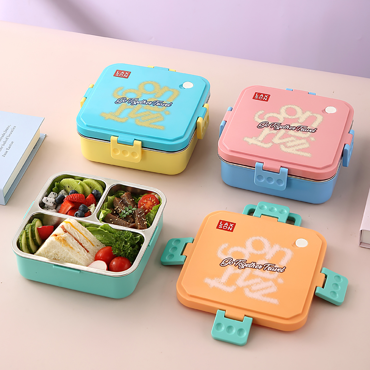 UV手提旅行箱獨(dú)立密封正方形不銹鋼餐盒750ml