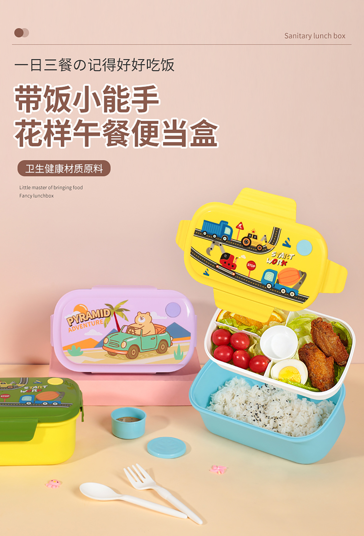 小健將二格飯盒1100ml/1350ml/探索家三格/樂樂車長方形飯盒